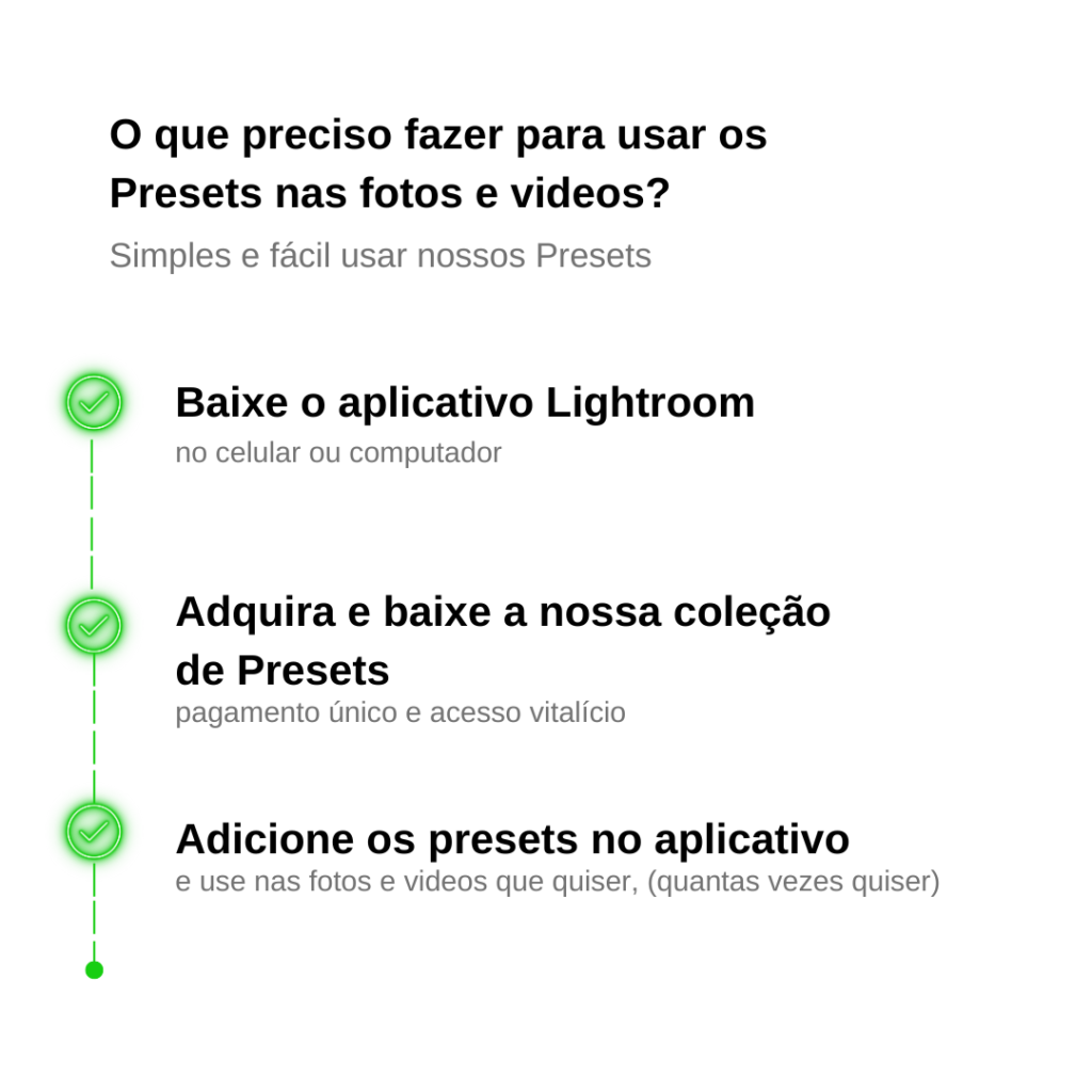 Você terá acesso vitalicio aos presets ou seja, terá acesso á todas as atualizações que poderão ser feitas.