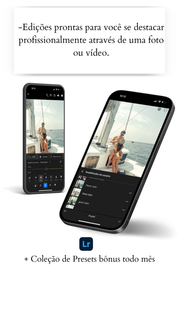 Você pode transformar fotos e vídeos de viagens ou trabalho com apenas 1 clique, impressione, atraia e gere desejo a quem olhe seu perfil. (a edição de videos é possível com o light room pro)